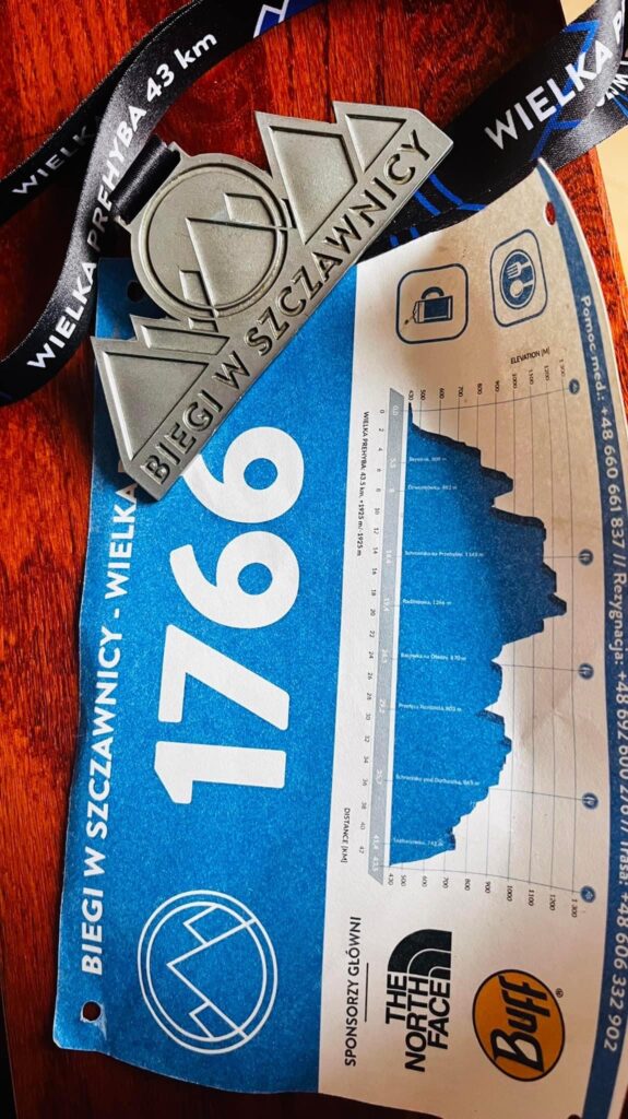 Z numerem 1766  i czasem 4:54:59 Szczawnica Wielka Prehyba wybiegałam 11 miejsce open kobiet/160 kobiet oraz 62 open/610 biegających.